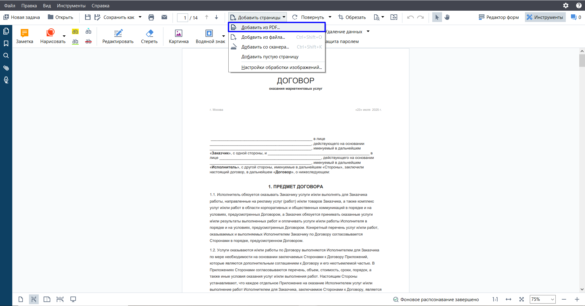 Объединение и редактирование страниц: сборка договора из фрагментов