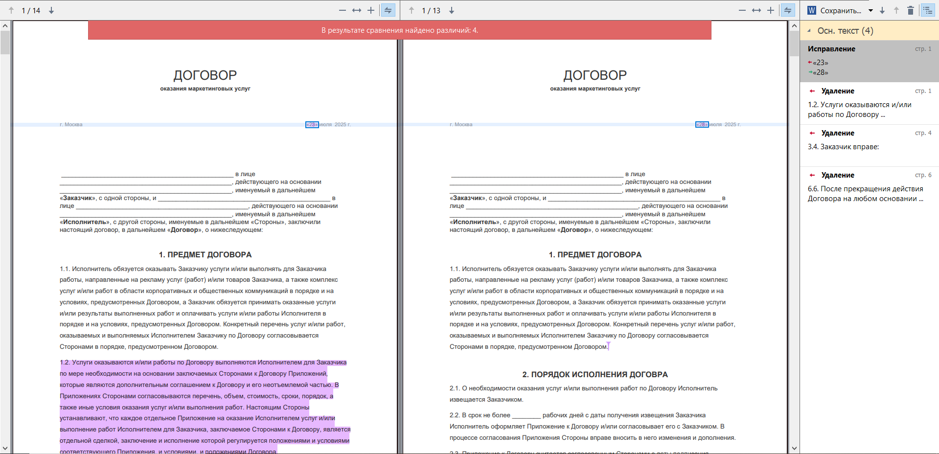 Сравнение юридических документов: контроль изменений в договорах