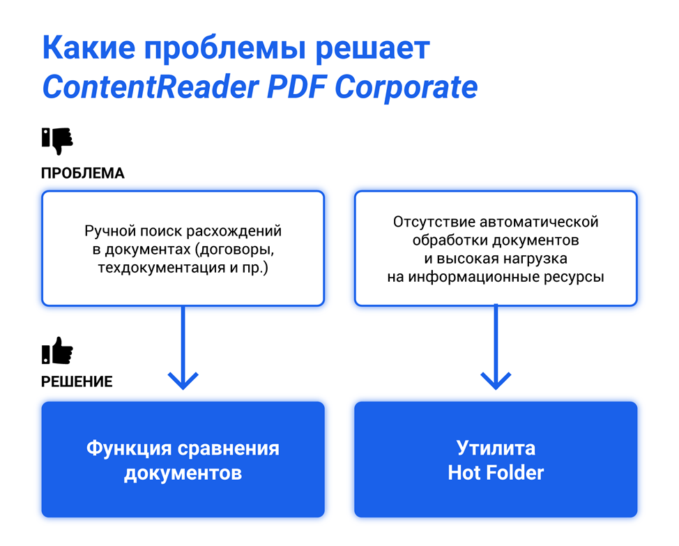 У ContentReader PDF есть две версии: Business и Corporate. У них одинаковый базовый набор инструментов, однако только версия Corporate включает две полезные фичи, способные существенно упростить жизнь специалистам, которые работают с большим количеством документов.