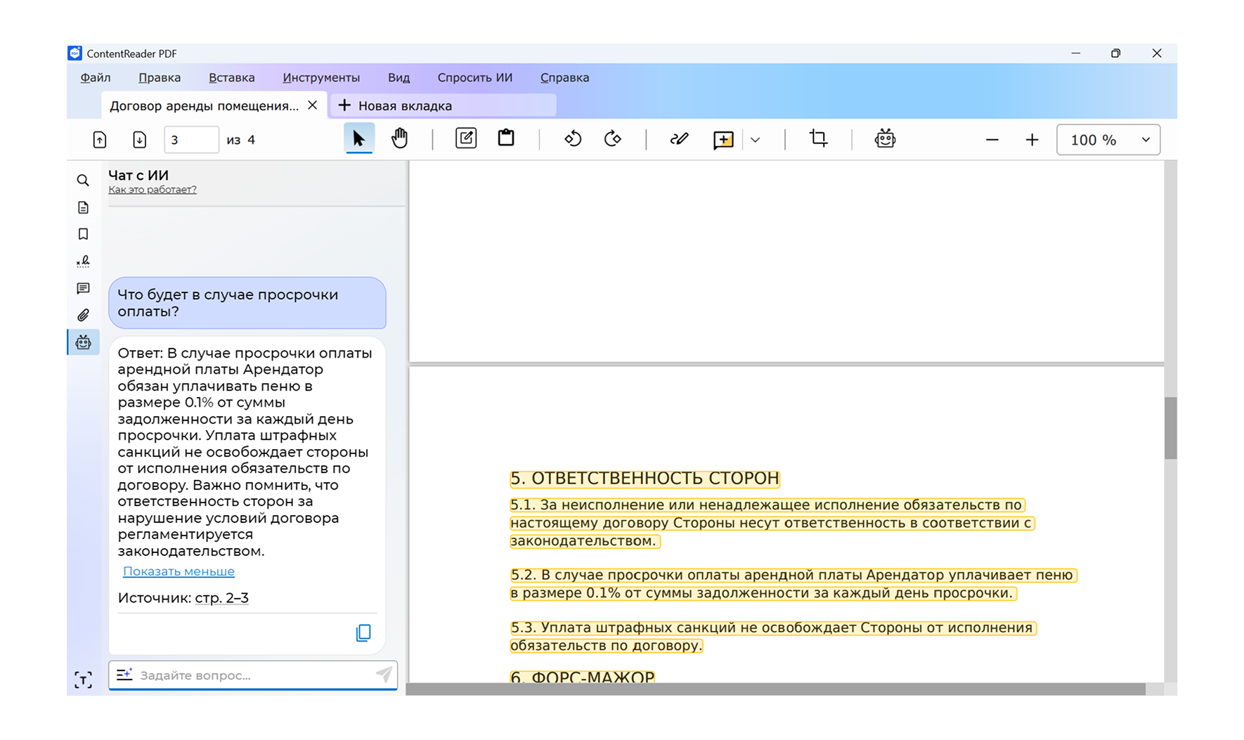 ContentReader PDF 16 поддерживает вопросно-ответный режим: пользователи могут задавать вопросы по содержанию документов на естественном языке и получать точные ответы. Например: